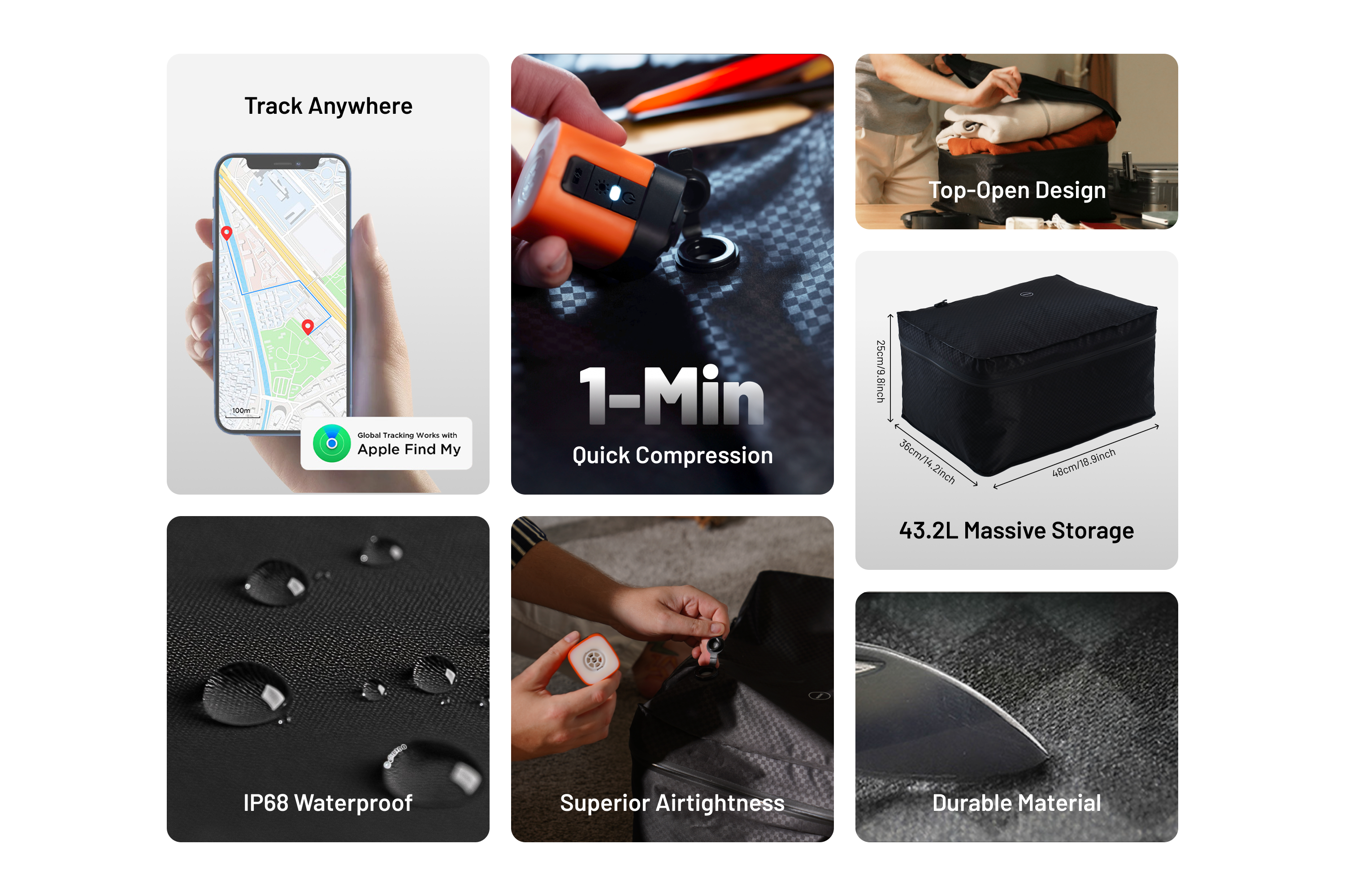 We use dive suit-level airtight zippers, dual-layer waterproof materials, and high-frequency welding techniques to ensure a completely airtight seal. Additionally, we have rigorously tested the YoYovac for 120 continuous hours, with no air leakage detected. This means there will be no air leakage during a journey equivalent to flying around the Earth three times.